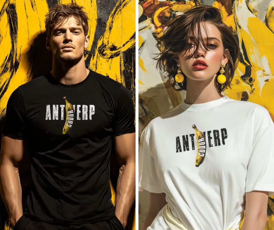 The design centers around our signature banana graphic playful yet rebellious splitting through the distressed ANTWERP typography to create a striking visual contrast.